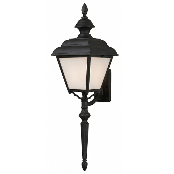 Home Decorative Exterior 24" Plymouth 4-Sided Wall Mount w/ Tail, E26, Opal Acrylic/Black Finish by Hanover Lantern