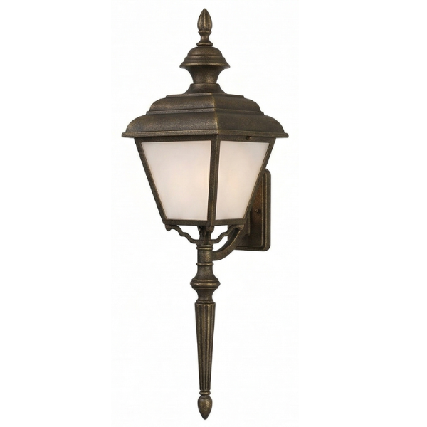 Home Decorative Exterior 24" Plymouth 4-Sided Wall Mount w/ Tail, E26, Opal Acrylic/Brass Finish by Hanover Lantern