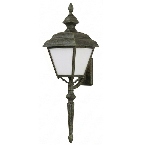 24" Plymouth 4-Sided Wall Mount w/ Tail, E26, Opal Acrylic/Verde Bronze Finish by Hanover Lantern