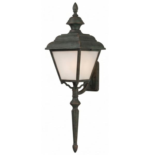 24" Plymouth 4-Sided Wall Mount w/ Tail, E26, Opal Acrylic/Verde Copper Finish by Hanover Lantern