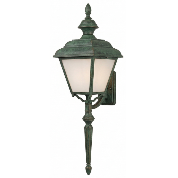 24" Plymouth 4-Sided Wall Mount w/ Tail, E26, Opal Acrylic/Verde Finish by Hanover Lantern