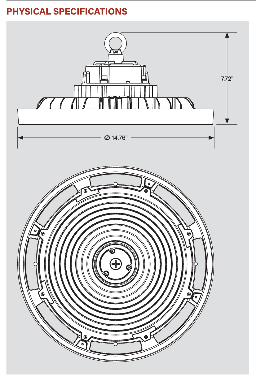 - LED lifetime: L70 >100,000 hours @ 25°C fixture ambient
