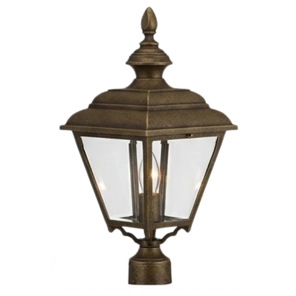 25" Plymouth 4-Sided Post Top, E26, Clear Glass/Brass Finish by Hanover Lantern