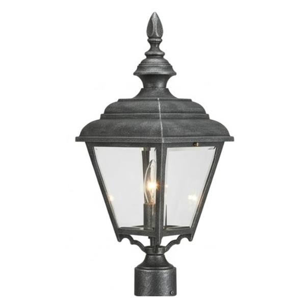 The Hanover Lantern B9955 is a large-sized, traditional exterior post-top lantern from the Value Line collection, designed to provide a stately and welcoming presence to any outdoor landscape. Handcrafted in the USA from durable cast aluminum, this fixture features a classic four-sided silhouette that offers balanced, 360-degree illumination for walkways, driveways, and entry points.