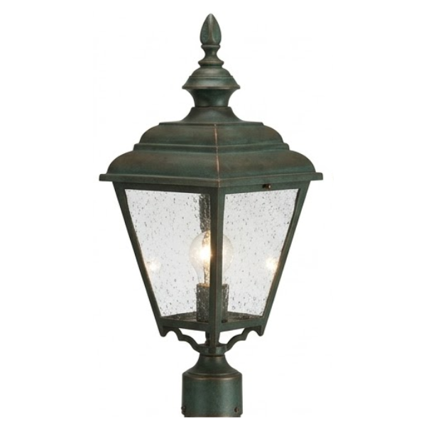 25" Plymouth 4-Sided Post Top, E26, Clear Seeded Acrylic/Verde Copper Finish by Hanover Lantern