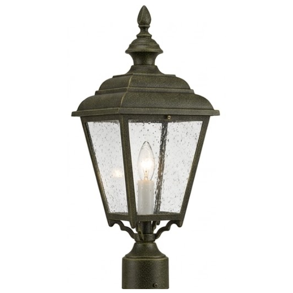 25" Plymouth 4-Sided Post Top, E26, Clear Seeded Glass/Verde Bronze Finish by Hanover Lantern