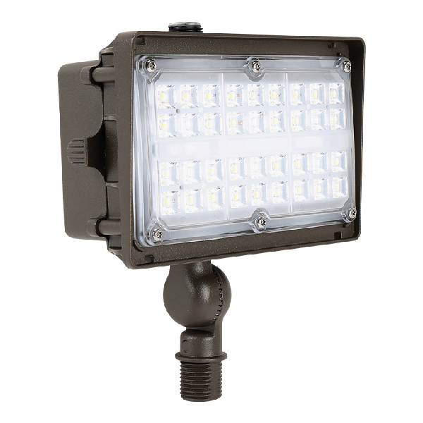 Home Floods 27W FXA Series Small Square Back LED Flood, 3000K CCT, 120-277V, Knuckle Mount, Bronze Finish by Trace-Lite