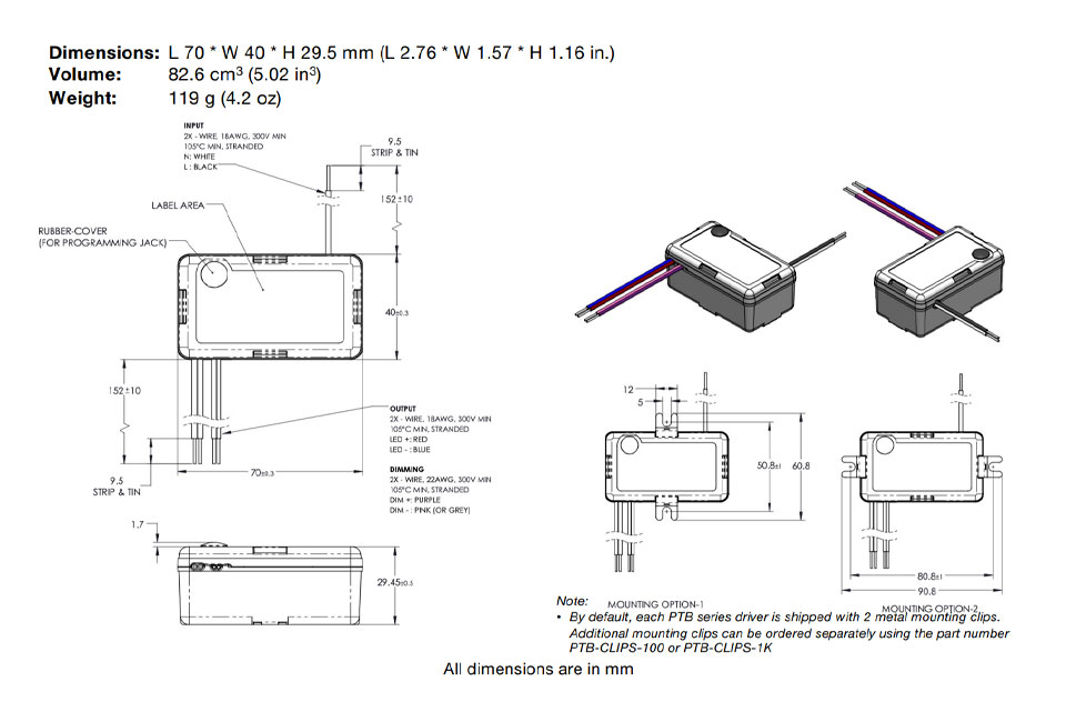 29.4W PTB30W-0700-42-FN Programmable Constant Current LED Driver with Tri-Mode Dimming by ERP Power