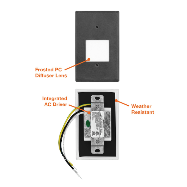 2W LUX-Line Step Light, 3 Interchangeable Faces (Horizontal/Vertical), 3000K CCT, 120V, Black Finish by EnvisionLED