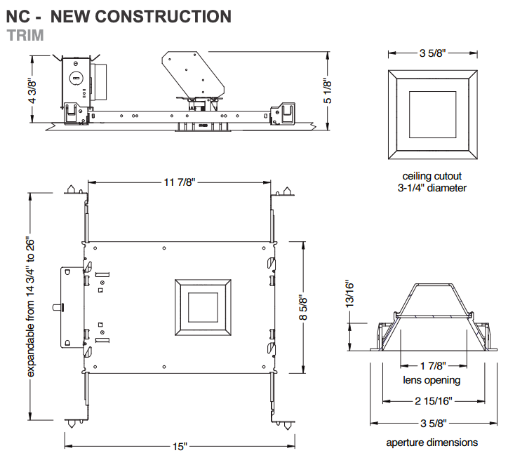 regressed trim assembly provides for clean, trim free installation. Perforated mud frame’s integrated lip helps