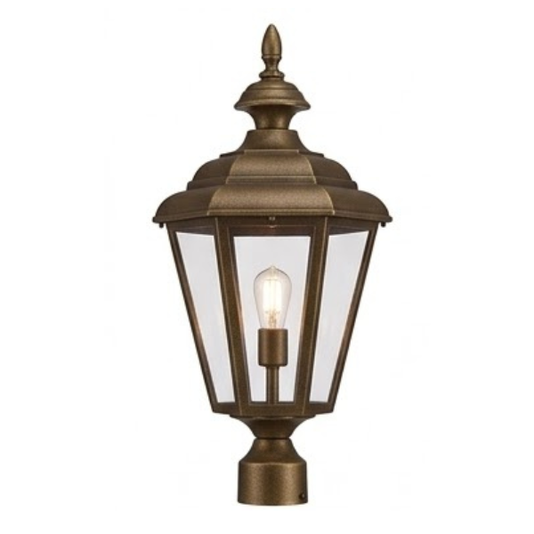 30" Jamestown 6-Sided Post Top, E26, Clear Acrylic/Brass Finish by Hanover Lantern