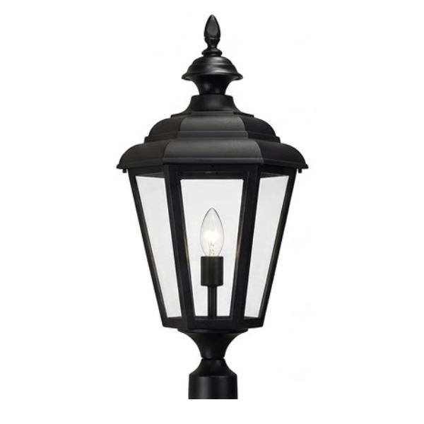 30" Jamestown 6-Sided Post Top, E26, Clear Glass/Black Finish by Hanover Lantern