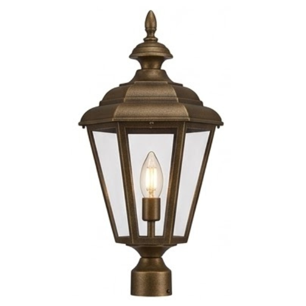 30" Jamestown 6-Sided Post Top, E26, Clear Glass/Brass Finish by Hanover Lantern