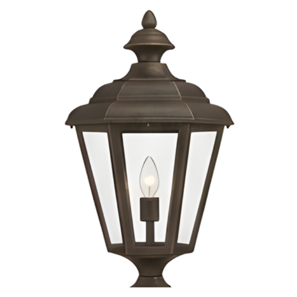 30" Jamestown 6-Sided Post Top, E26, Clear Glass/Weathered Bronze Finish by Hanover Lantern