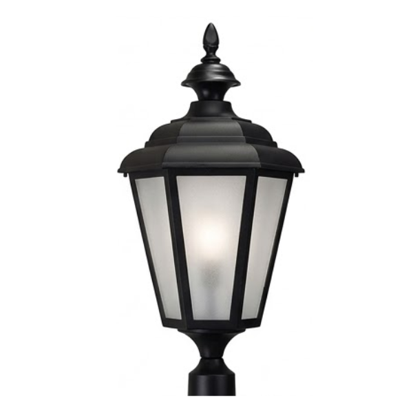 30" Jamestown 6-Sided Post Top, E26, Frosted Glass/Black Finish by Hanover Lantern