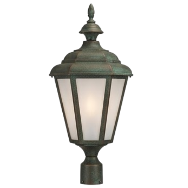 30" Jamestown 6-Sided Post Top, E26, Opal Acrylic/Verde Copper Finish by Hanover Lantern