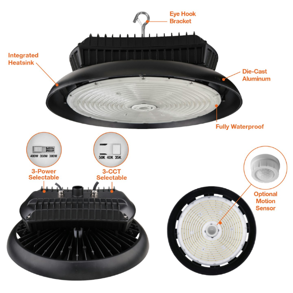 300/350/400W Round High Bay, Wattage & CCT Selectable, Black Finish by EnvisionLED