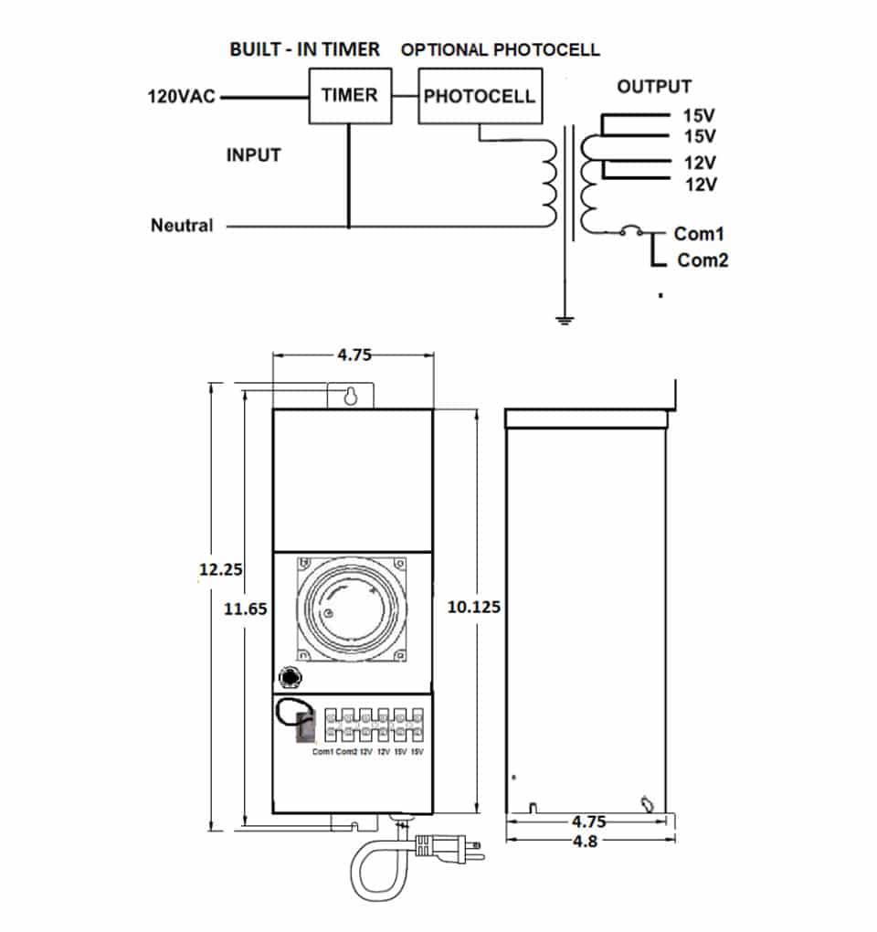 - Output voltage without load: 12/15VAC