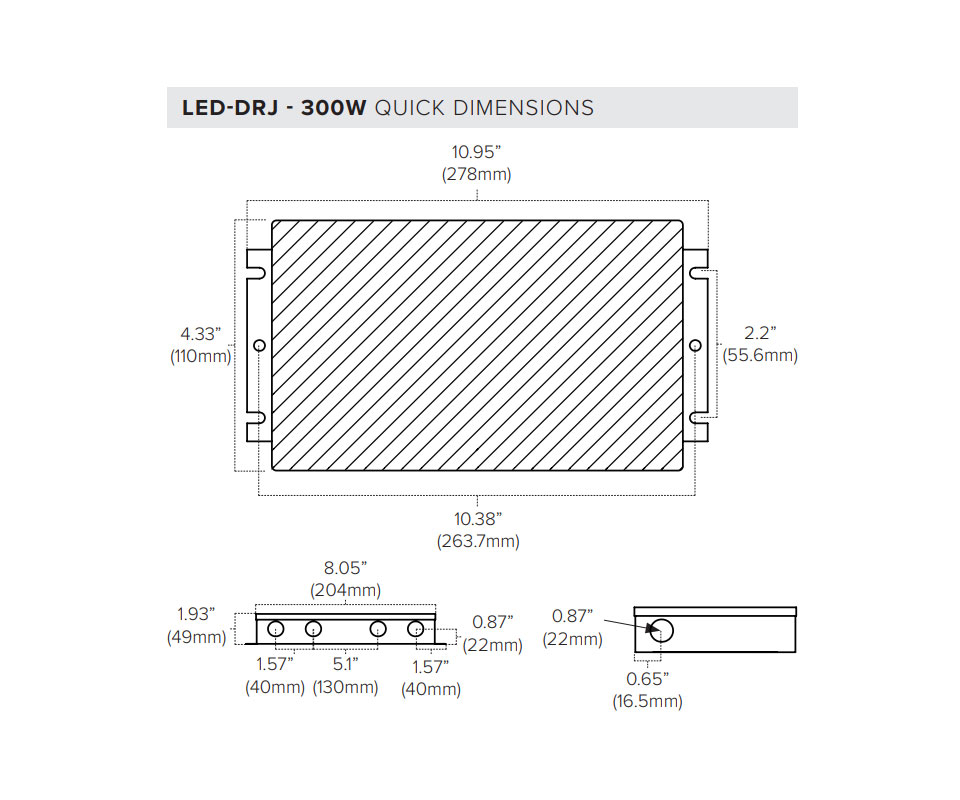 The LED-DRJ Series features universal 100-277V AC power input with high reliability. Standard built-in protections include short circuit, over-current, over-voltage, and over temperature. Used commonly with DMX decoders and controls for secondary side dimming, they can also be used in non-dimming applications (minimum loads apply). Durable aluminum housing features integrated junction box and wet location rating.