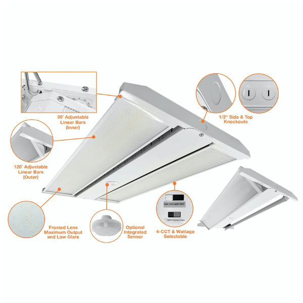 380/410/440W 2' Linear High Bay, Wattage & CCT Selectable, High Voltage by EnvisionLED