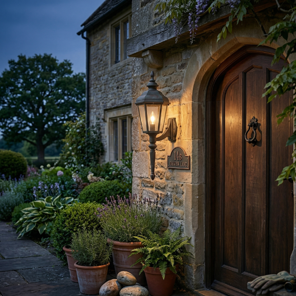 The Hanover Lantern B9934 is a classic, handcrafted exterior wall mount lantern designed to add a touch of traditional elegance to entryways, garages, and patio areas. Custom-made in the USA, this durable aluminum fixture features a clean, six-sided design that provides reliable illumination while enhancing your home’s architectural character.