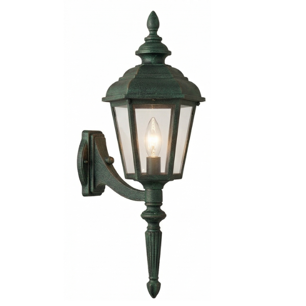 35" Jamestown 6-Sided Wall Mount w/ Tail, E26, Clear Acrylic/Verde Finish by Hanover Lantern