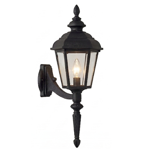 35" Jamestown 6-Sided Wall Mount w/ Tail, E26, Clear Glass/Black Finish by Hanover Lantern