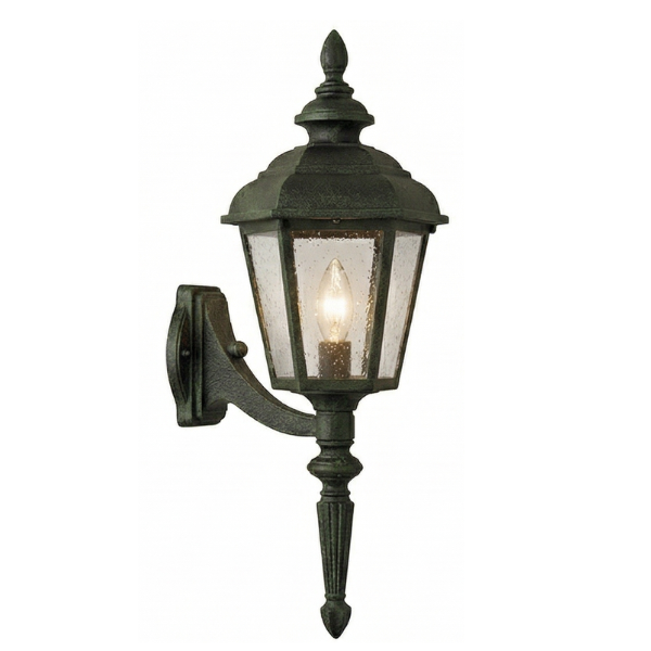 35" Jamestown 6-Sided Wall Mount w/ Tail, E26, Clear Seeded Acrylic/Verde Bronze Finish by Hanover Lantern