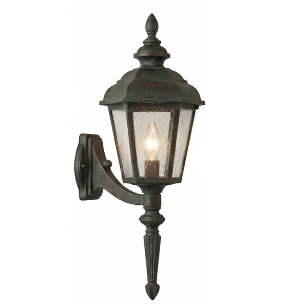 35" Jamestown 6-Sided Wall Mount w/ Tail, E26, Clear Seeded Acrylic/Verde Copper Finish by Hanover Lantern