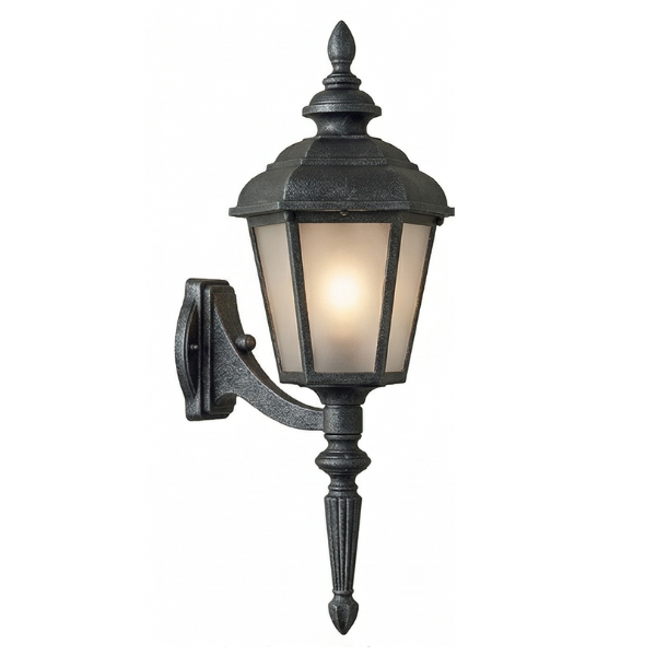 35" Jamestown 6-Sided Wall Mount w/ Tail, E26, Frosted Glass/Silver Finish by Hanover Lantern