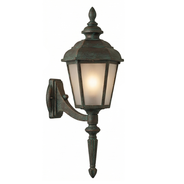 35" Jamestown 6-Sided Wall Mount w/ Tail, E26, Frosted Glass/Verde Copper Finish by Hanover Lantern