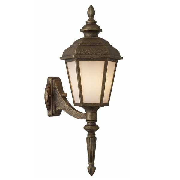 Home Decorative Exterior 35" Jamestown 6-Sided Wall Mount w/ Tail, E26, Opal Acrylic/Brass Finish by Hanover Lantern