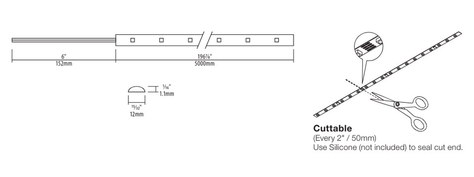 - Mounting - This flexible LED tape is provided with a 3M® high bond adhesive backing that provides secure mounting to smooth surfaces.