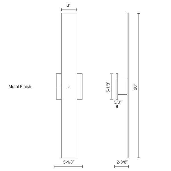 Timeless simplicity with versatile purpose is offered with this wall sconce that measures 36 inches in length. Vesta mounts horizontally or vertically from a matching aluminum square affixed in the middle of the rectangular beam of formed aluminum. The concealed LEDs illuminate the mounting plane, creating a pool of light on the wall.