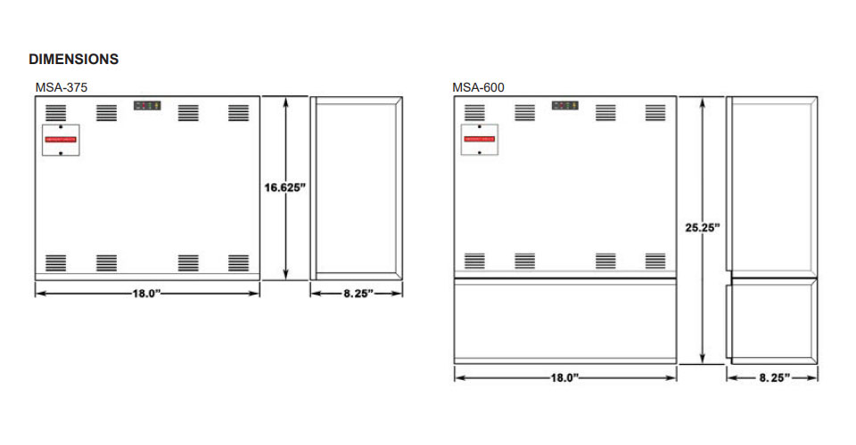 The Mesa Series is a single phase, standby, solid-state inverter system designed to provide “soft-start” power to designated emergency lighting fixtures. Each system consists of a self-contained inverter section with a fully automatic, thermal-compensating, variable-rate battery charger. The Mesa series is designed to function in conjunction with the existing building electrical system to provide Pulse Width Modulated (PWM), sinusoidal, high-quality power conditioning, backup power protection and distribution for lighting loads and other critical loads. Upon failure of the normal utility power, the Mesa Series automatically transfers to inverter mode and provides a minimum of 90 minutes of emergency power to the connected load. Lumen output will be maintained at 100% of the lamp’s rating throughout the duration.