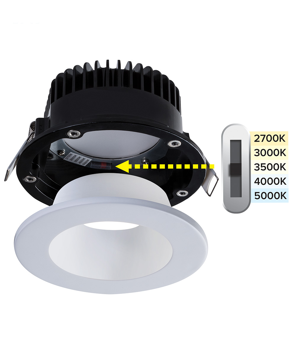 SKYE is a high-performance, easy-to-install residential and commercial downlight solution that offers good light output, energy efficiency and streamlined design with interchangeable color trims and color selectable switch. Suitable for wet locations. SKYE Select dead-front trims available to provide a 2-tone professional trim and baffle finish.