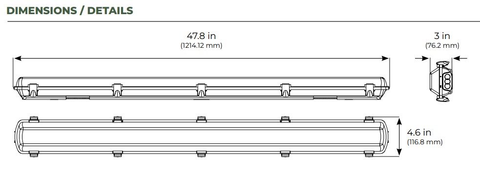ETi SSL’s 4-FT Dimmable Vapor Tight is designed with durable stainless-steel latches to prevent moisture and dirt from compromising the housing and damaging interior wires and components inside the fixture. Vapor Tights are weatherproof and rated IP65 as dust tight and protect against projected water.