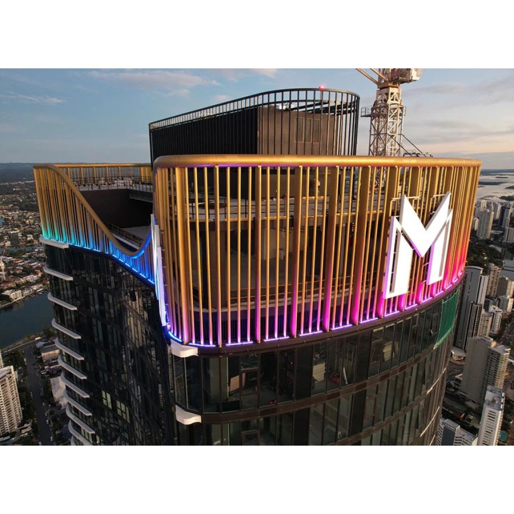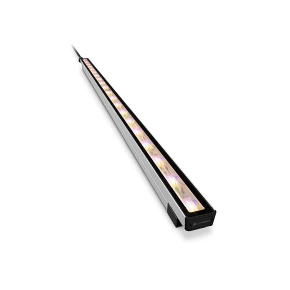 Graze Compact Powercore gen2, RGBW is a high-performance, exterior linear luminaire designed to highlight architectural features like molding details, archways and windows up to two stories high. Graze Compact RGBW luminaires adds a separate white LED creating better-quality whites compared to RGB. Multiple luminaire lengths and beam angles support a large range of façade or surface illumination applications. The brand new low-profile housing, connectorized cabling, a universal power input range, and direct line voltage make Graze Compact luminaires easy to install and operate.