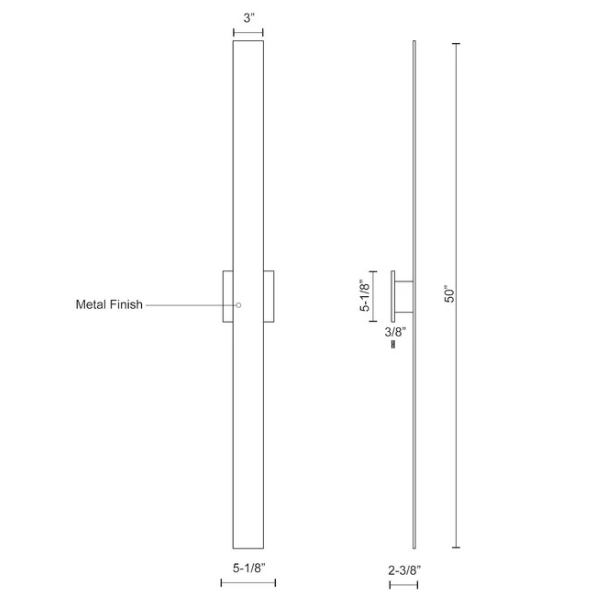 Timeless simplicity with versatile purpose is offered with this wall sconce that measures 50 inches in length. Vesta mounts horizontally or vertically from a matching aluminum square affixed in the middle of the rectangular beam of formed aluminum. The concealed LEDs illuminate the mounting plane, creating a pool of light on the wall.