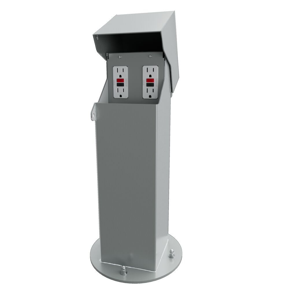 Provides convenient access to power in shared spaces with a heavy-duty power pedestal from Intermatic. These easy-to-install, low-maintenance cULus 1773 approved solutions are built of heavy gauge 304L stainless steel with 14 GA uprights, powder-coated and designed to withstand the harshest outdoor environments. Each power pedestal includes a self-closing, lockable cover for added security. Ideal for retrofit and new construction applications.