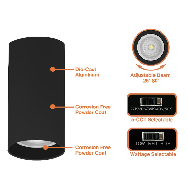 6" CACM Module, 30/35/40W ARCY-Line Cylinder, CCT Selectable, Black Finish by EnvisionLED