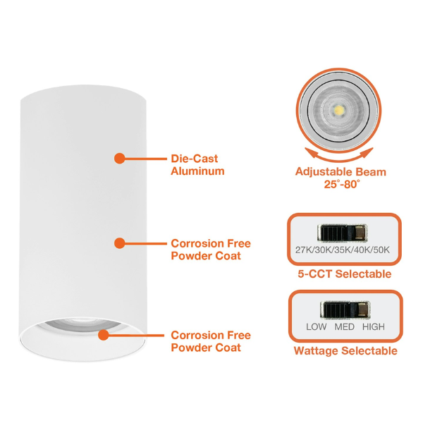 2700K, 3000K, 3500K, 4000K, 5000K, Color Selectable