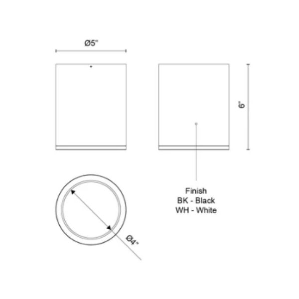 Home Cylinders 6" Nordic (5" Dia.) Ceiling Light, Black Finish by Kuzco