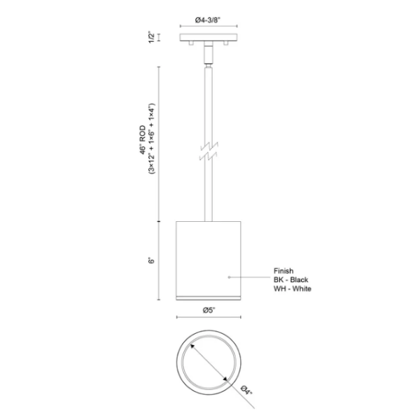 Home Cylinders 6" Nordic (5" Dia.) Round Pendant, White Finish by Kuzco