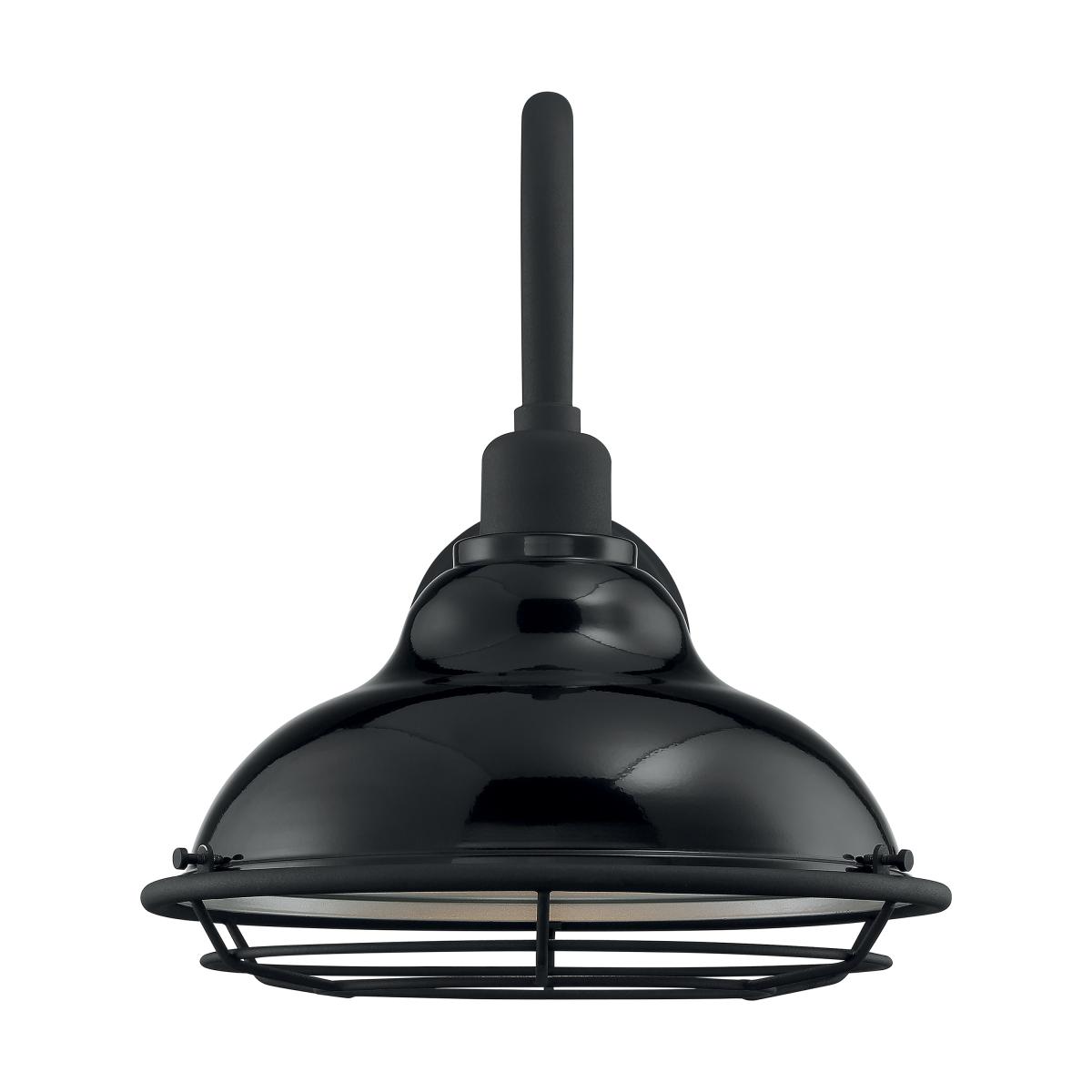 Part of the Newbridge collection1-light large outdoor wall sconce with black and silver accentsDurable steel constructionWet location rated for outdoor useAccommodates up to 60W bulb (not included)Dimmable with compatible bulbs and dimmersDimensions: 14.13" height, 12" width, 19.25" extensioncETLus safety listed and RoHS compliant1-year limited warranty