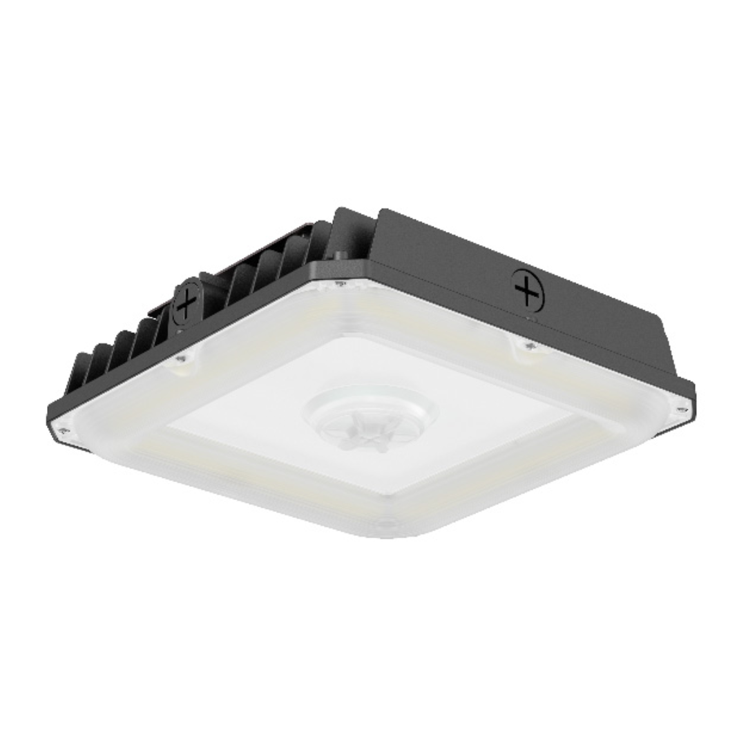 DESIGN - LED EDGE-LIT CANOPY WITH Q-BASE has a built-in motion sensor base, allowing you to install the microwave motion or PIR sensor. Die-cast aluminum housing with excellent heat dissipation along with an anti-glare PC lens provide many years of use. It is designed to operate on 120-277V circuits with a 0-10V dimmable driver.