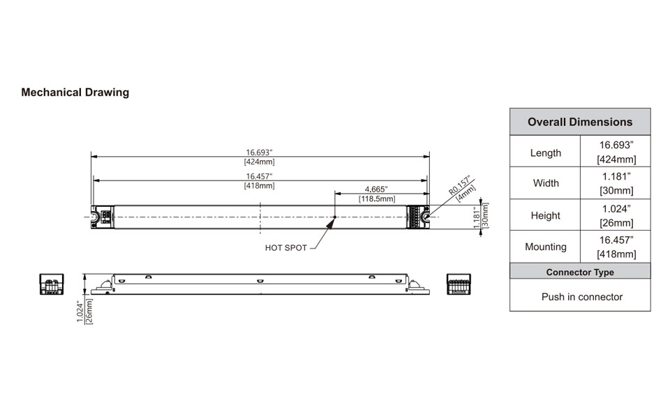 • Linear Form Factor with Connectors