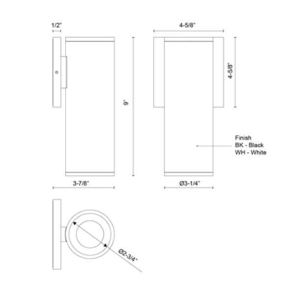 9" Lorna (3" Dia.) Round Cylinder Wall Sconce, Black Finish by Kuzco