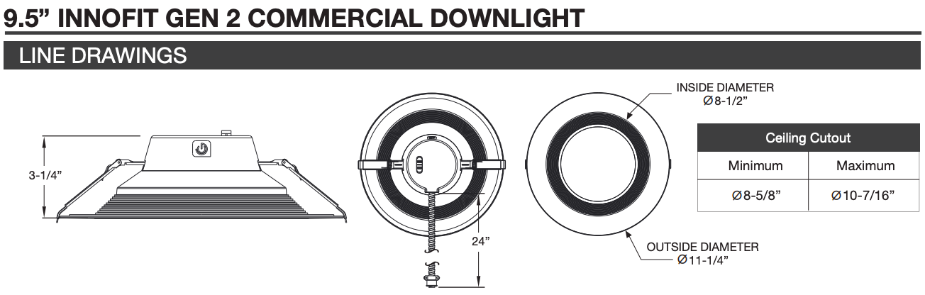 InnoFit G2 9.5" Lumen Selectable Dimmable Downlight by Green Creative