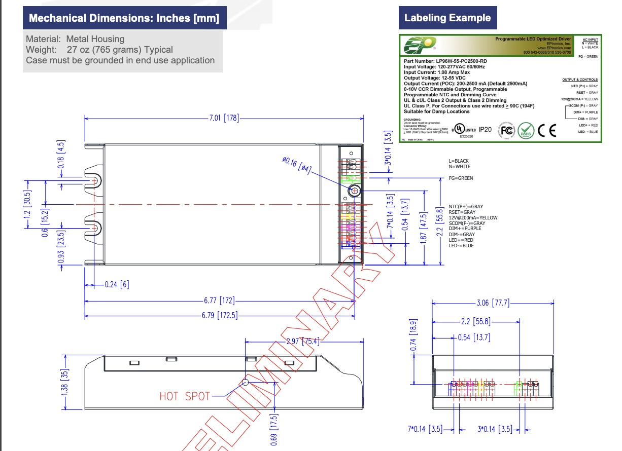 • CC Dimming Options: 0-10V Linear dimming or LOG Dimming 0% - 100%